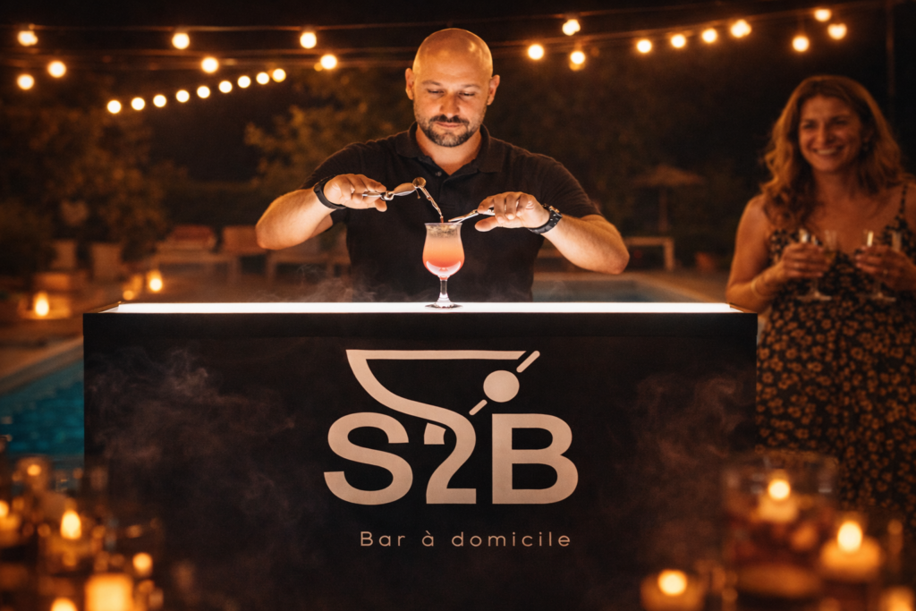 Le bar ne se trouve plus dans un établissement : il vient à vous. S2B propose un service de bar mobile haut de gamme à domicile ou en entreprise, avec des barmen professionnels, du matériel de qualité et une carte de cocktails personnalisée.